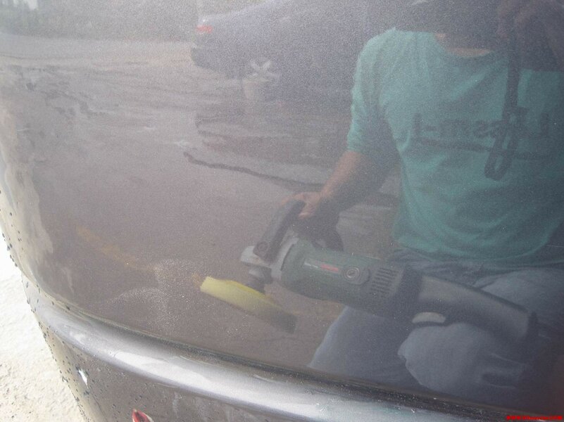 本帖最后由 帮你美车 于 2012-3-3 01:12 编辑 车主在车库泊车不小心蹭到墙了,来店咨询小的,我鉴定了一下损伤,不浅的划痕啊。光油层被伤得不轻,只能放手一搏~~~车主说如果不行,就去重新烤漆了。不过,小弟我最后侥幸修复成功~ 工具:RO抛光机、黄色5寸抛光盘、5000#水砂纸 药剂:EXQ2500研磨剂...