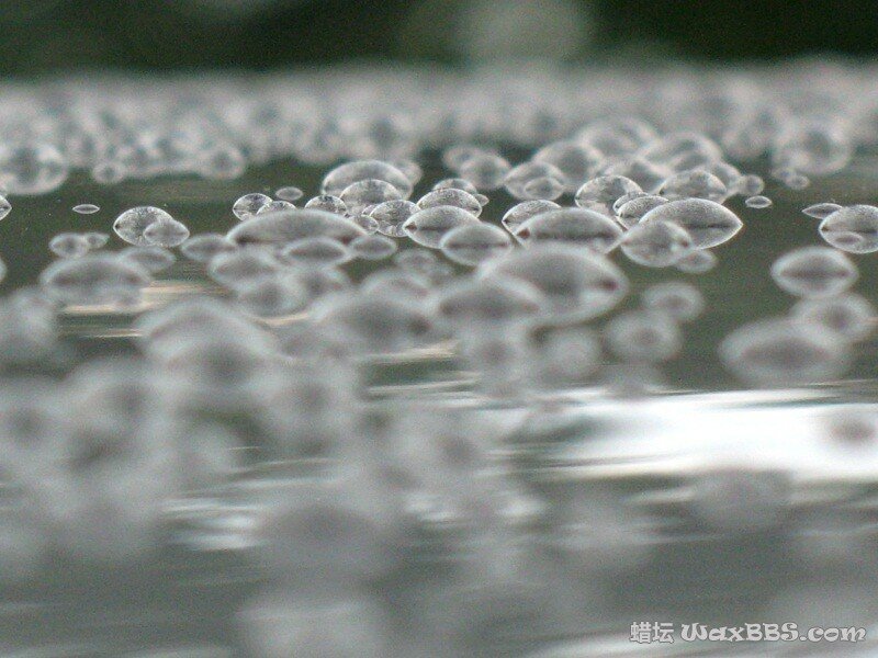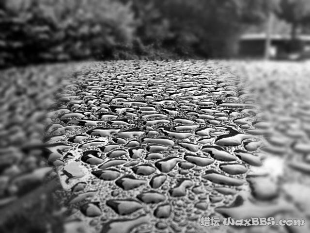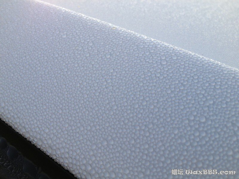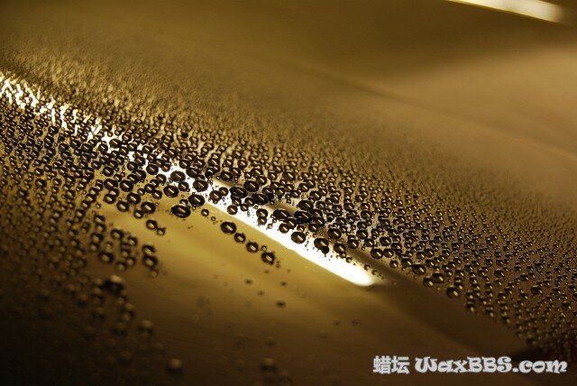 对于漆面的水珠来说,受到一些因素的影响,比如不同的产品各有不同的配方,形成的水珠形态各式各样,漆面的清洁度、细纹划痕的多寡也对水珠有影响,水珠在车身的不同部位也有不同形态,封体和蜡总体上来说水珠也有区别,以前以水珠来判断蜡质量好坏的标准,似乎在一些产品面前失效,水珠的作用变成欣赏拍照了,对于我们来说,只要漆面没有出现亲水区,那么就证明蜡层还在保护车漆,无需担心。