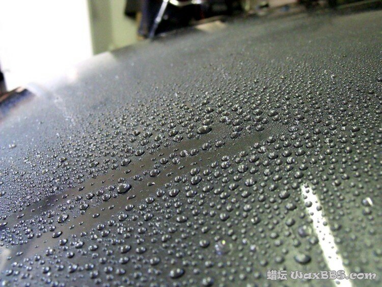驱水水要比较快速流走不会在漆面停留太久,否则就算亲水,下图不清楚水流走的速度,但应该还有一点点保护层在。