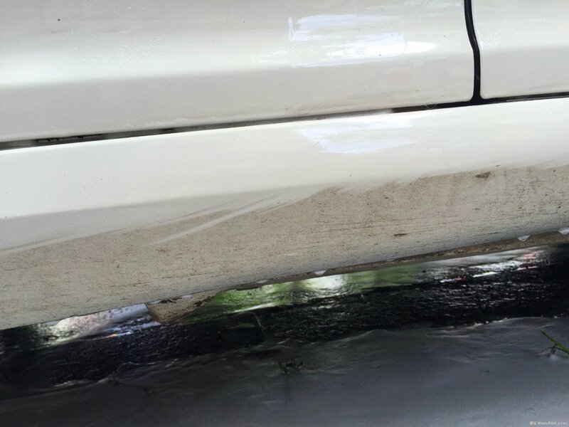 中间没拍照,略过。。。可以看到在两桶水擦洗结束后还是会有漏掉的地方比如侧裙的下方,后包围的下面等等,以及还有很多的柏油附着。