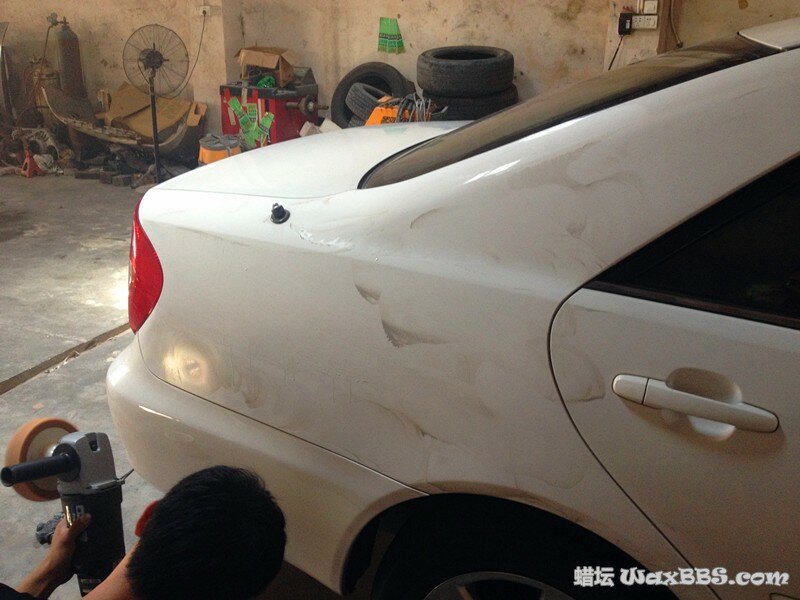 我稍微看了车子的漆面,车子上面的柏油,铁粉很多,摸摸漆面感觉就是在摸一张砂纸一样..差不多是800的砂纸吧,很粗..