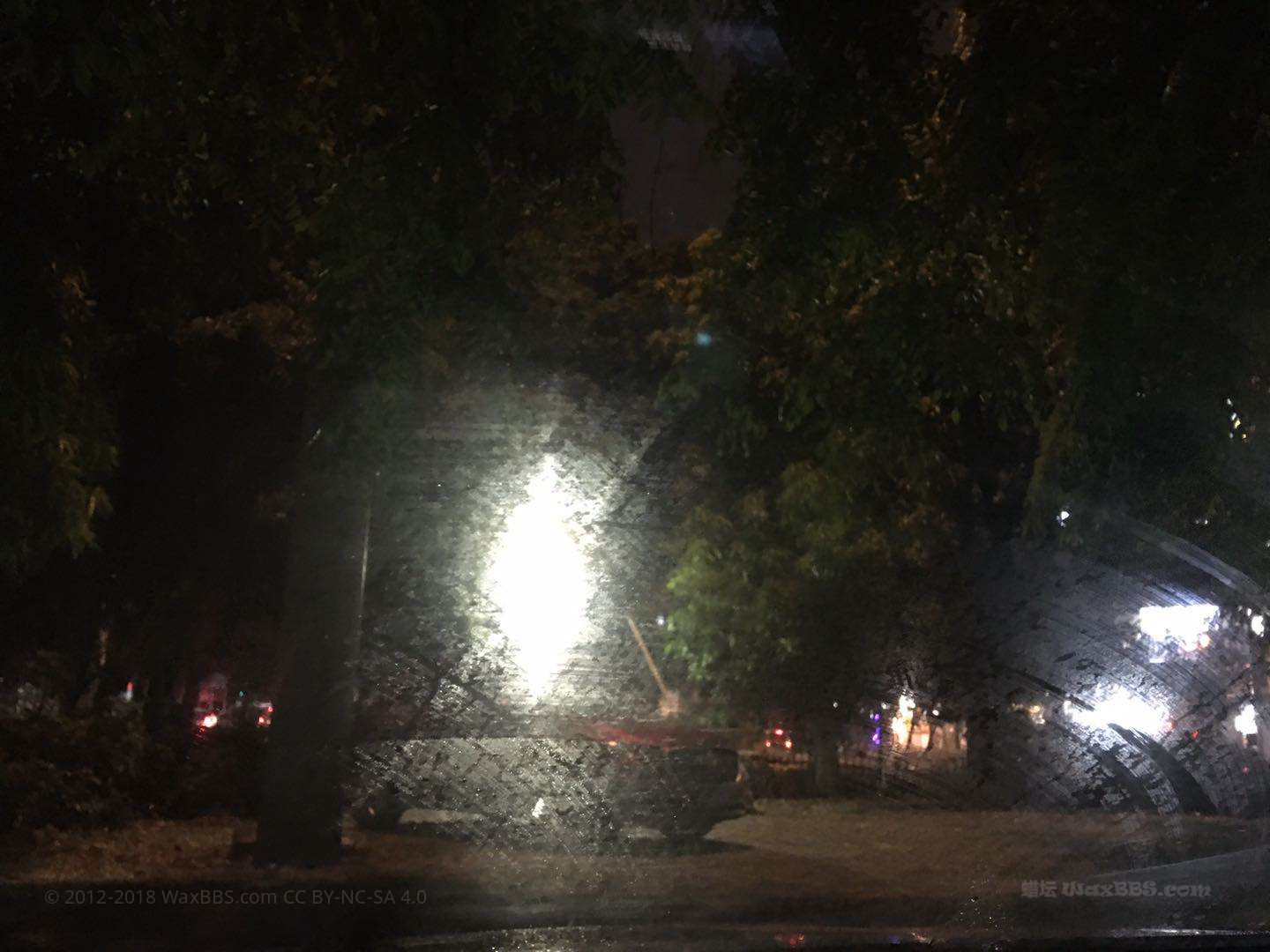 雨刮器刮后就出现白蒙蒙一片,但几秒后就慢慢消失,雨天晚上跟车瞬间变瞎。(不是雨刮器问题)如下图: