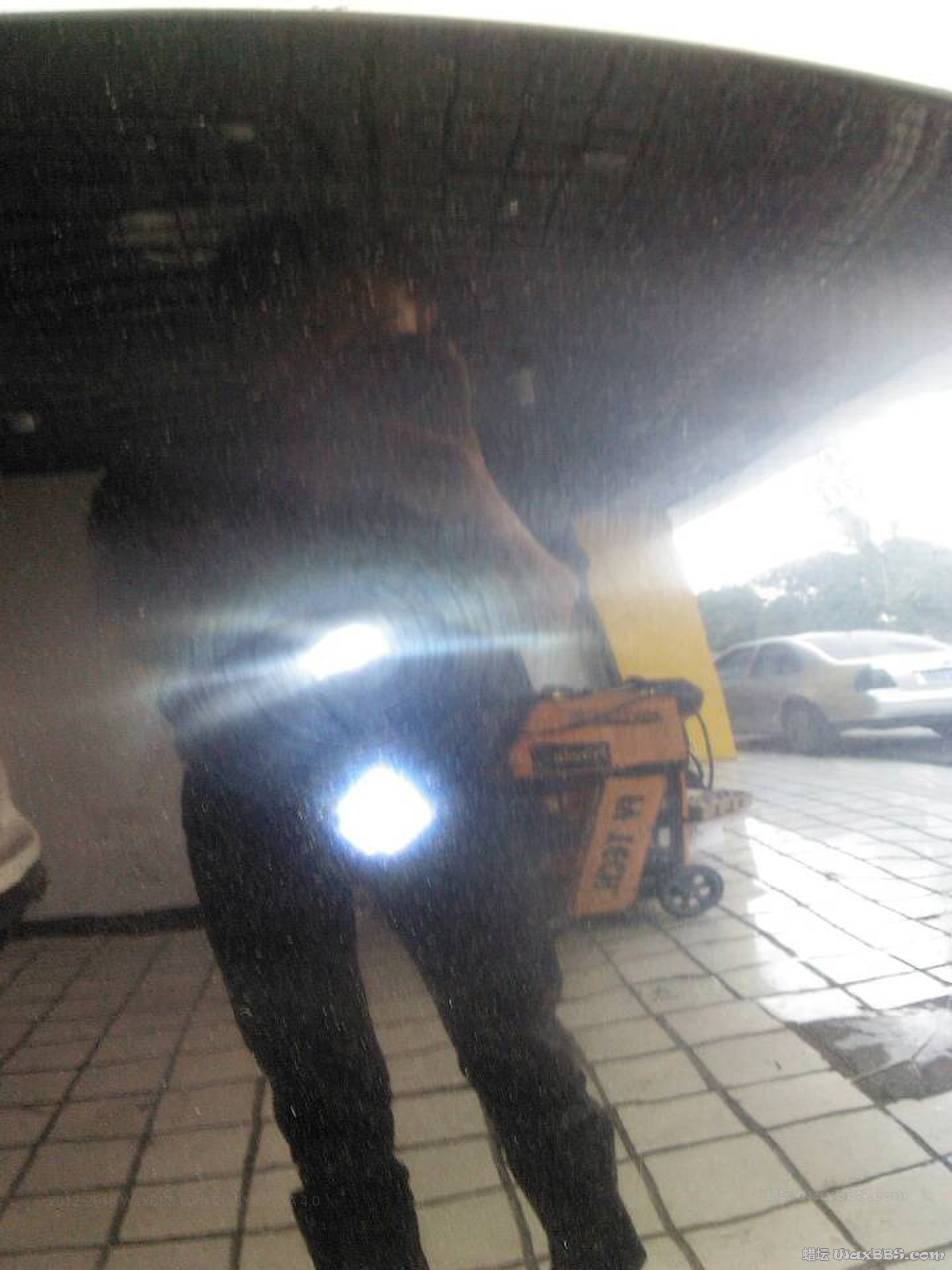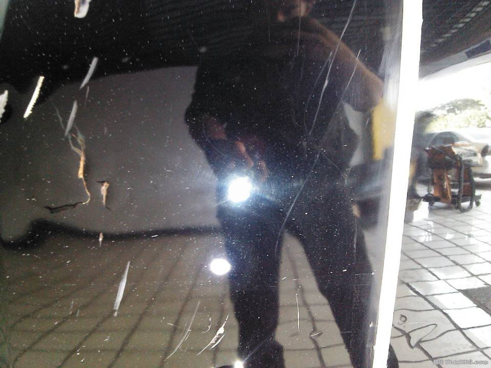 对了,明哥,我趴引擎盖前面看, 感觉油漆里面还有一丝丝的小痕,感觉是砂过没抛掉的样子。可是抛来抛去还在、看起来高低不平
