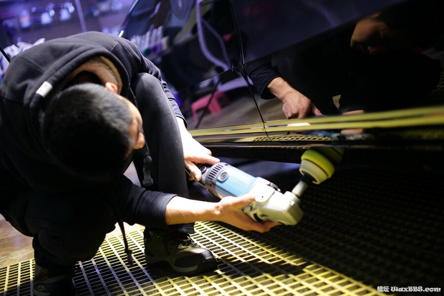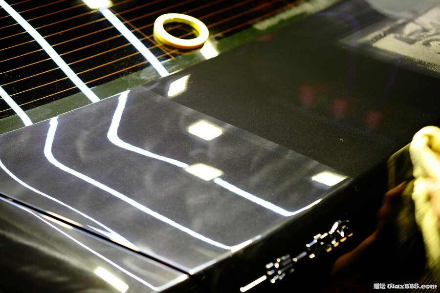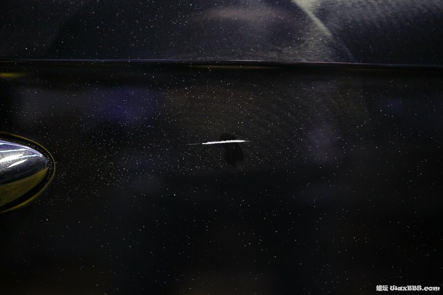 整车精洗后,在店内专业仿太阳光的灯光下,显现出了原本覆盖在灰土下难以觉察的表面划痕---太阳纹