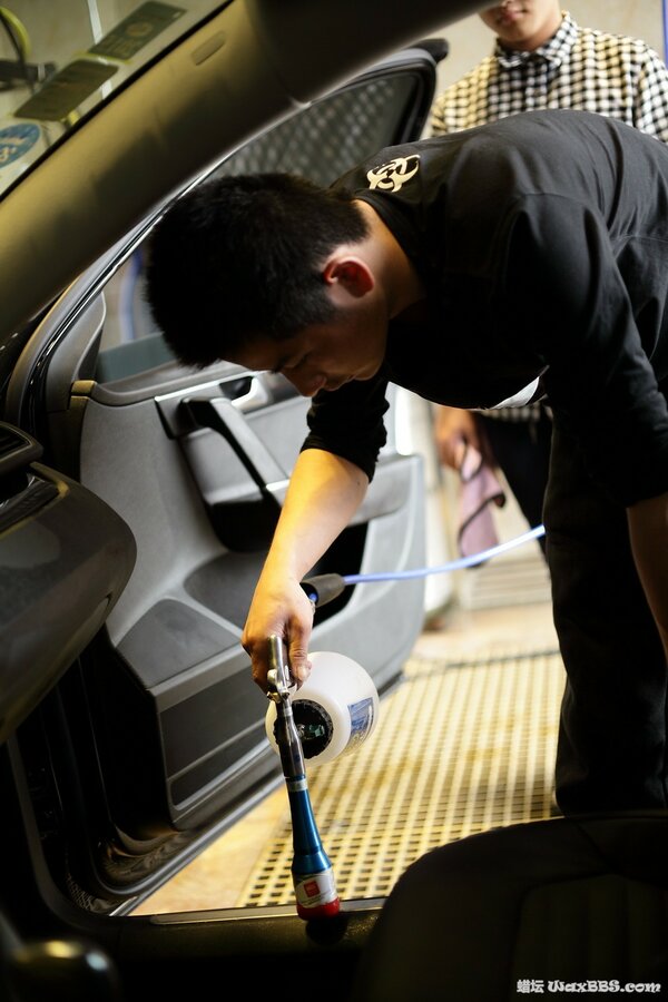 在细致的清洗过程中,车主对我们细致特别的施工流程产生了浓厚的兴趣,在之后的沟通交流
