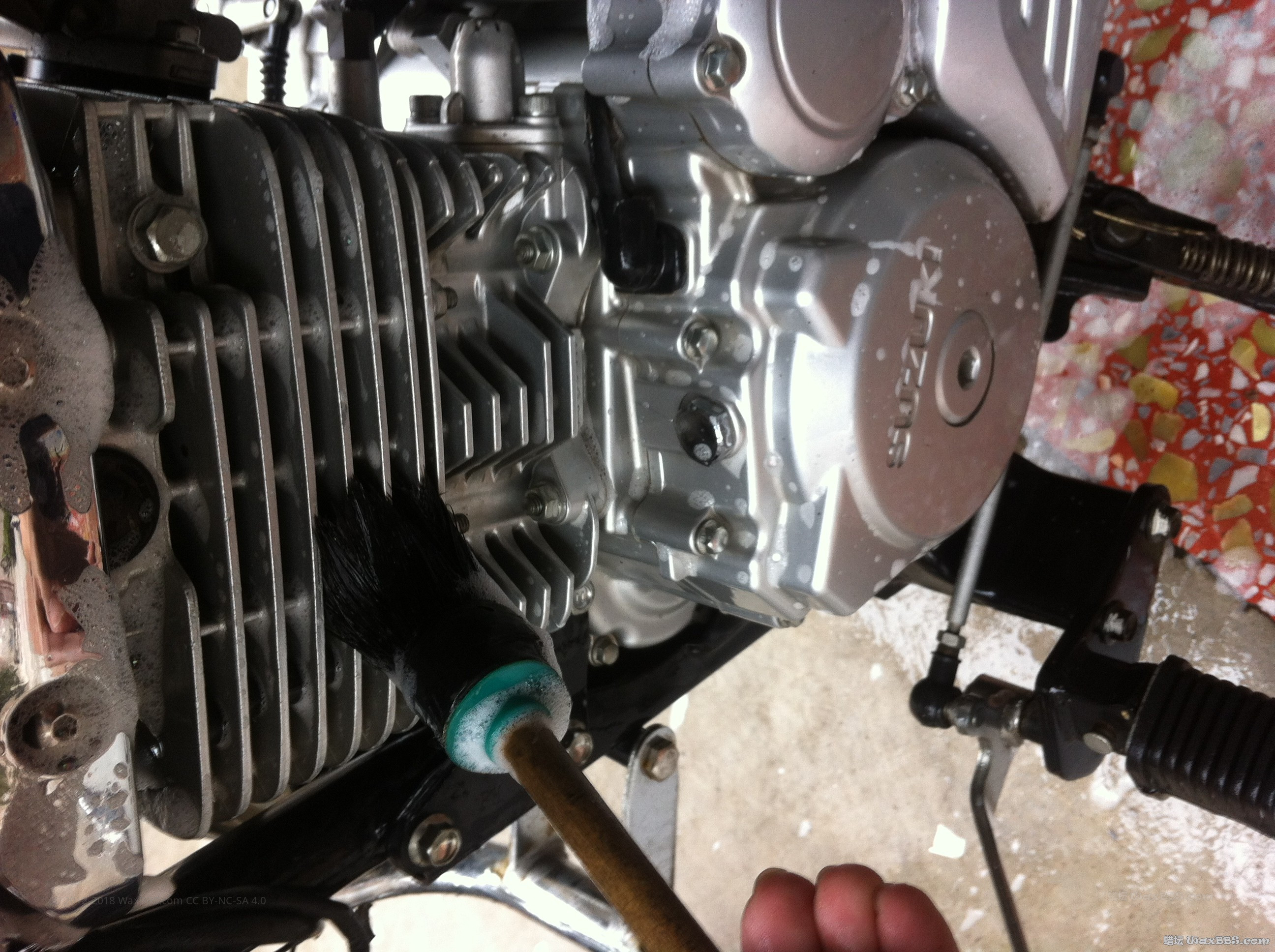 大家好,近来年尾有点小忙。借周末的好天气。小撸一把。不多说。上图。 简单说说,预洗后,美光蜡水两桶水。然后针对性的下了点药剂。用了120脱脂。再小抛了一下。上点保护。 别以为撸个小摩托很简单,很多坑坑条条,凹凹凸凸的。自我感觉不比一个小车省事。不过我也是很轻松的简简单单的撸撸。哈,凑合看看吧兄弟们。
