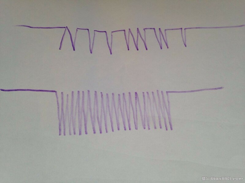 其实,楼主的水砂手法存在一定的问题。如下图,上面的应该就是你砂的表面。下面是正确的结果。由于这个需要亲身面对面讲解才能明晰,专门画了两个简易图,希望楼主可以依靠自己领会。