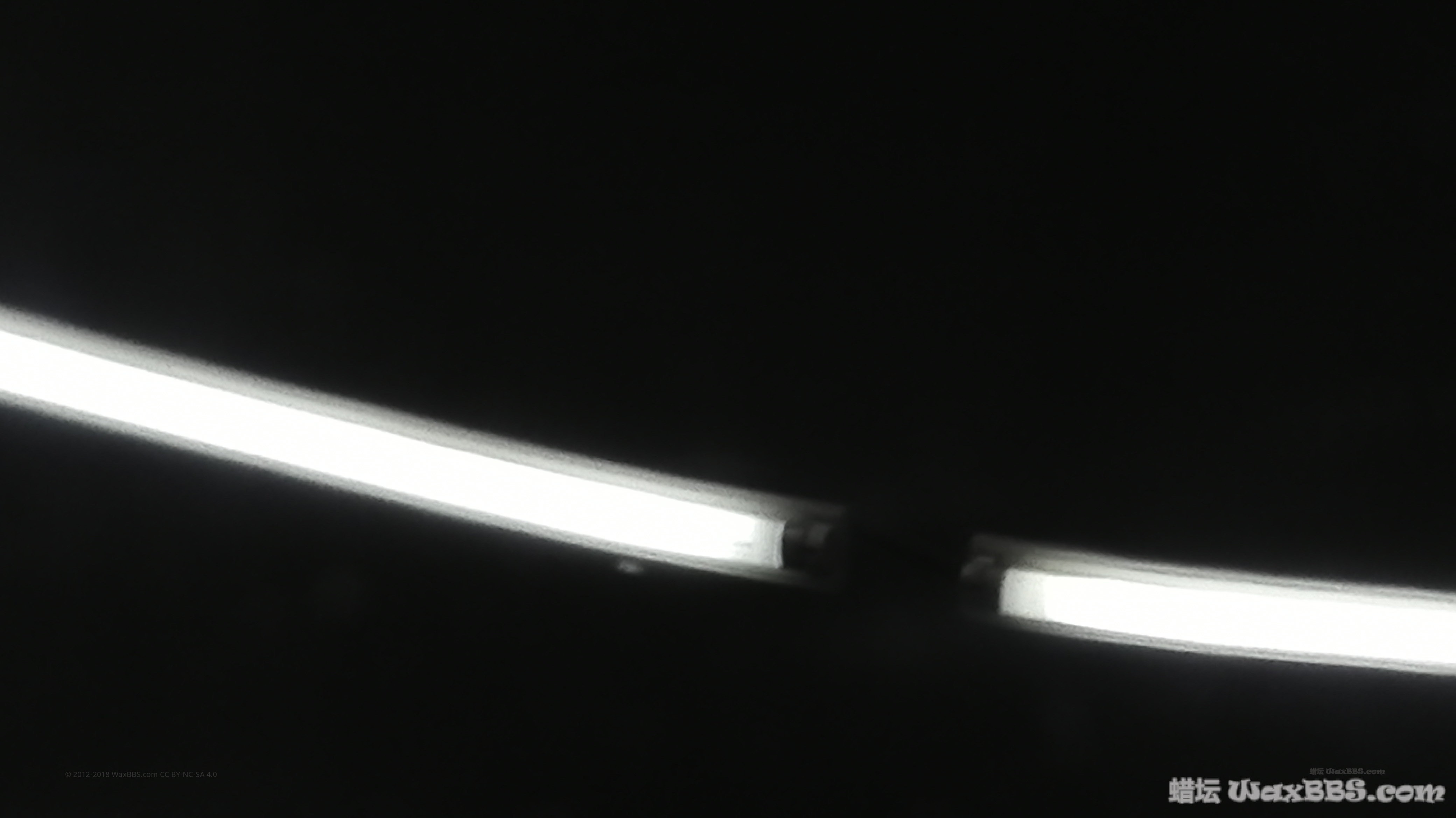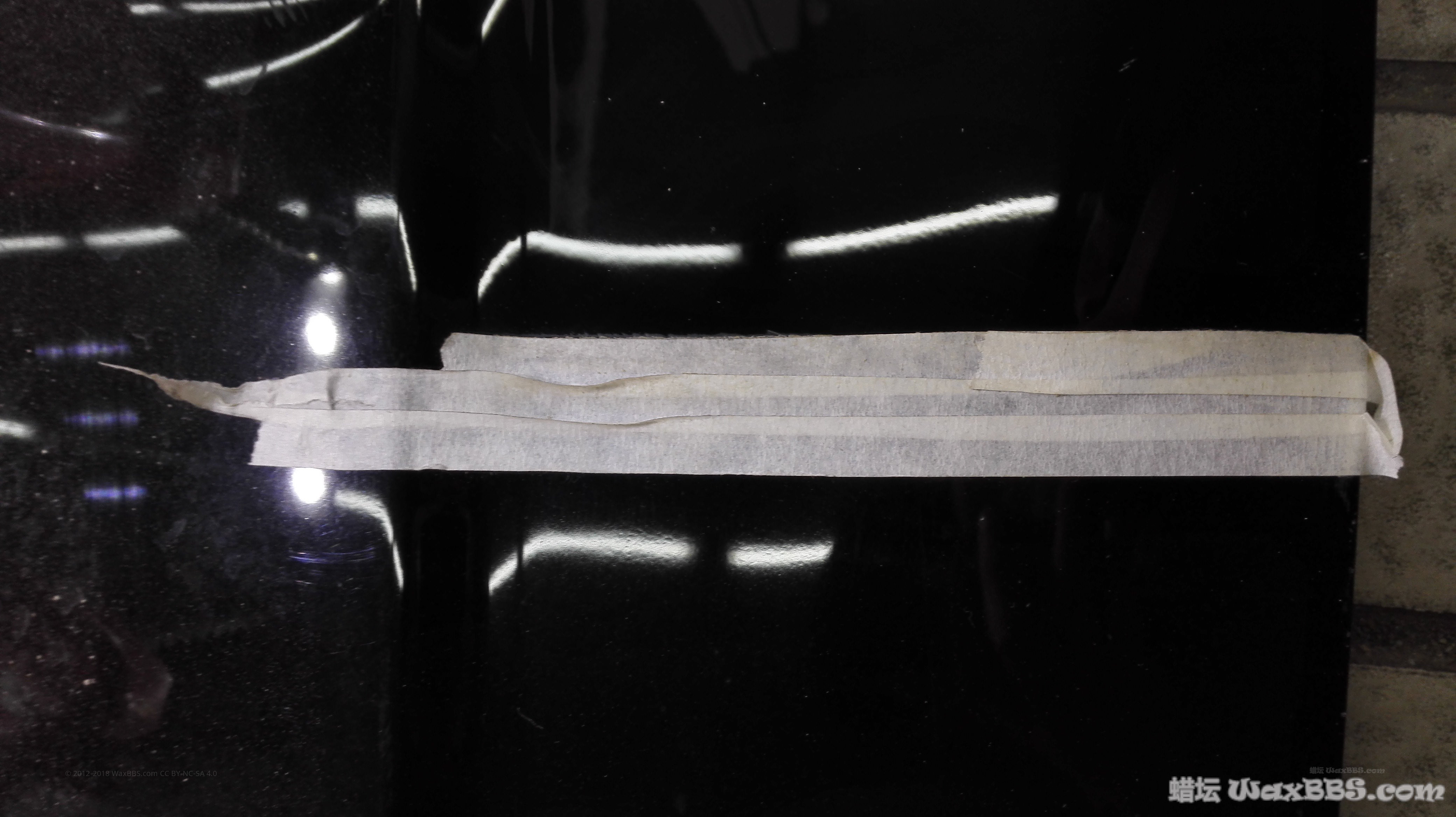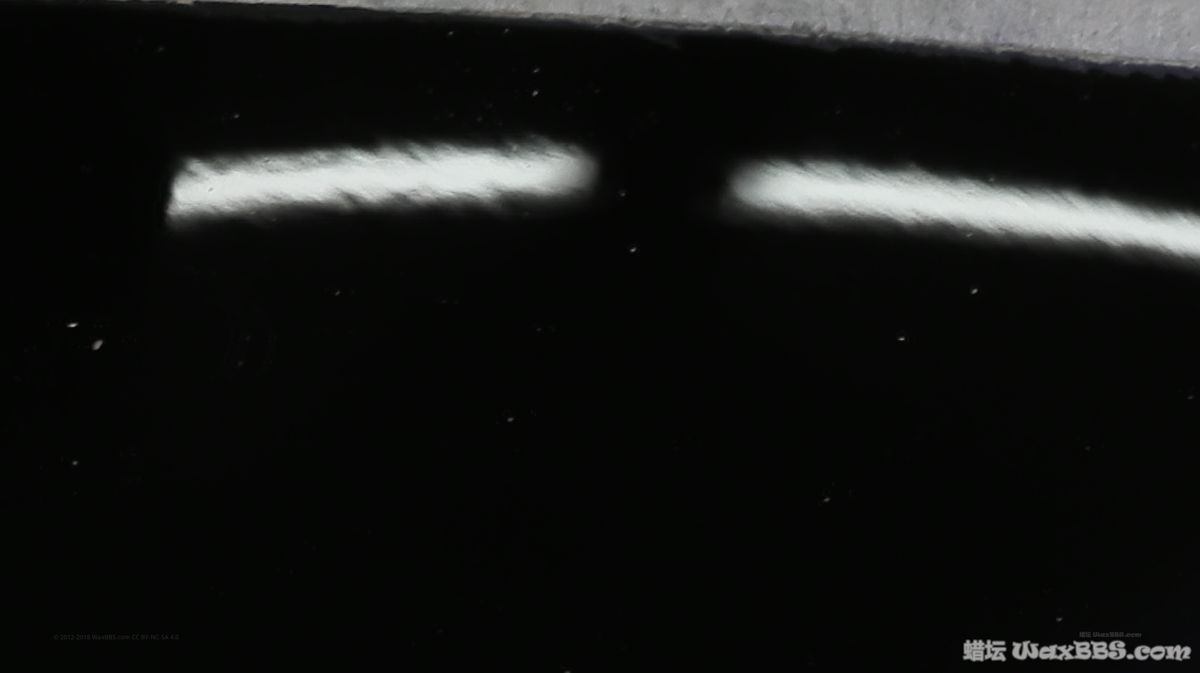 单独拍摄反射的灯光,要是车有经过抛光而是清漆橘皮就会和这张图类似进行抛光只要橘皮没消失就可以大胆的抛小结下