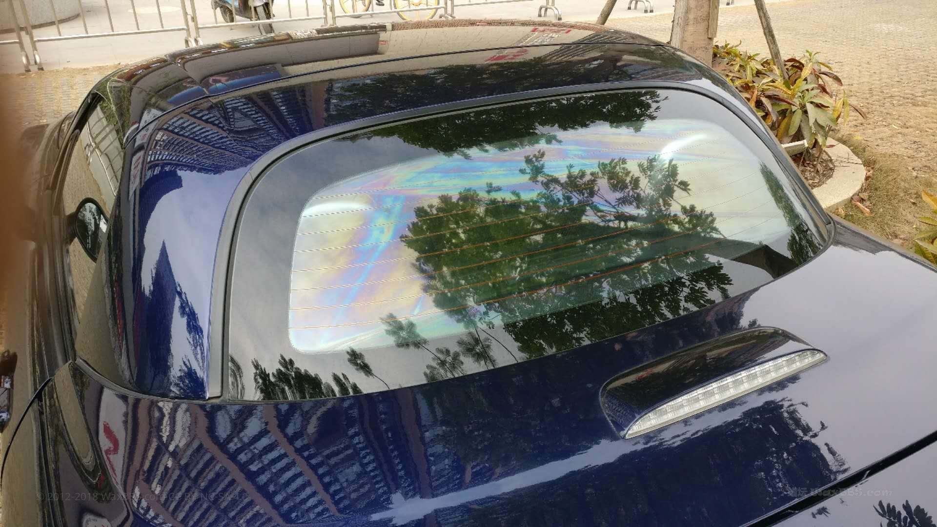 求助,把汽车玻璃上的贴膜给撕掉了,结果从外面看,有明显的彩虹斑,如何清除?多谢!!!