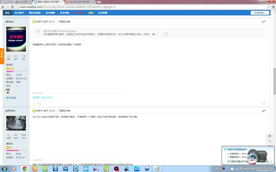 没明白普遍使用和抵制镀膜有啥联系,另外,从我个人角度并不抵制镀膜,上面的回复也只是针对蜡和封体氧化 ...